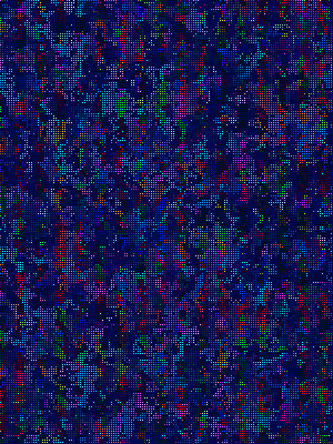 what makes this work is the modulo operation. each dimension wraps around within its bounds: positions wrap at image edges, colors wrap at their maximum values. the walk is constrained but still explores the entire space. over time, organic flowing patterns emerge as the walker revisits positions with different color states.